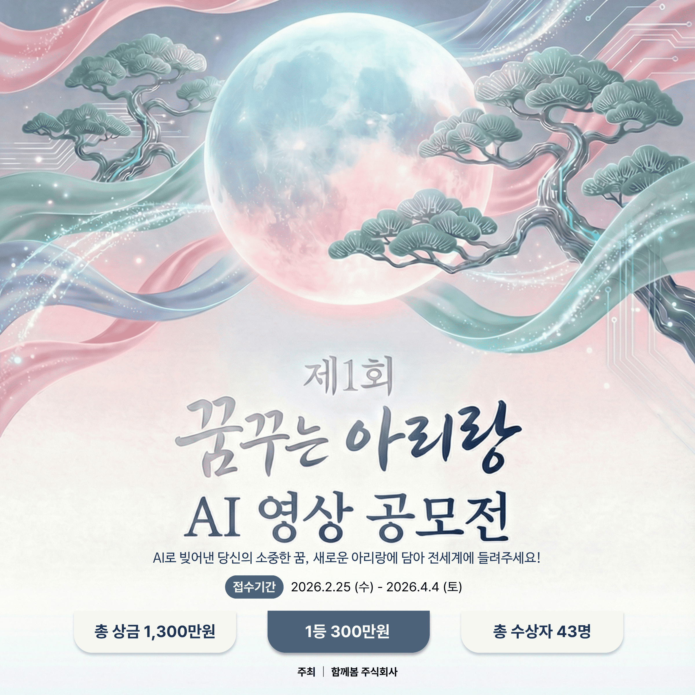 “아리랑은 한국인의 영원한 노래” - 호머 헐버트 (한국의 외국인 독립운동가) 헐버트 박사의 아리랑 채보 130주년 기념! 제1회 ‘꿈꾸는 아리랑’ AI 영상 공모전으로 우리 아리랑을 다시 한번 세계로 알립니다. 이번 공모전은 한국의 전통 가락인 ‘아리랑’과 현대의 ‘AI 기술’, 그리고 여러분의 ‘꿈’을 하나로 연결하는 창의적인 시도를 목표로 합니다. 여러분만의 독창적인 시선으로 아리랑의 새로운 꿈을 보여주세요!